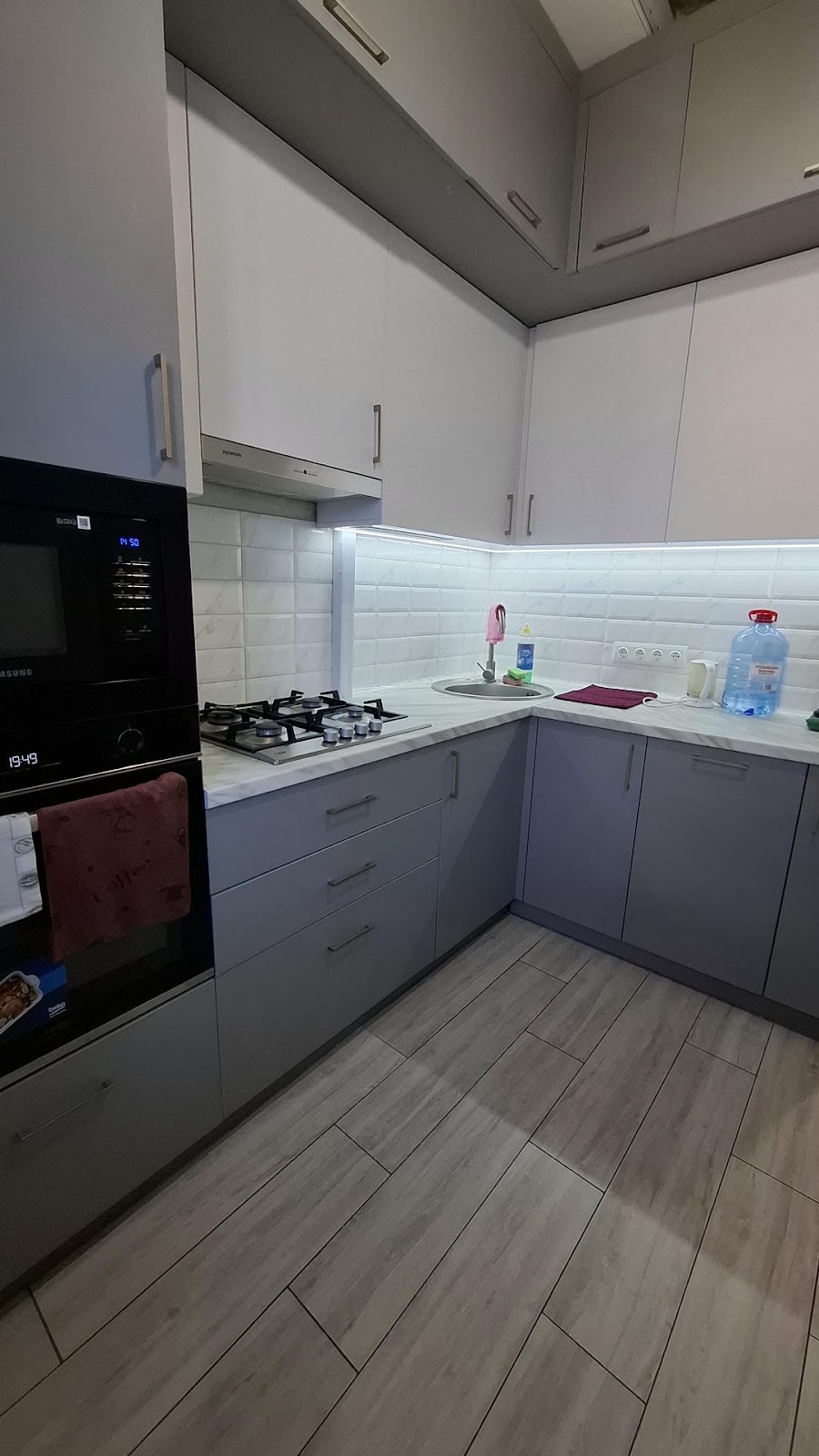 - Кухонне обладнання: Сучасна мікрохвильова піч та духова шафа для приготування їжі.